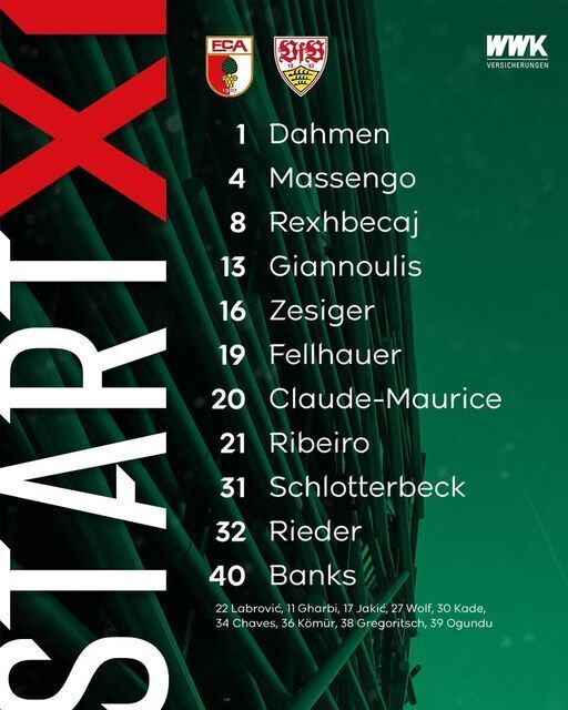 FC Augsburg @fcaugsburg1907 56m 𝐑𝐞𝐚𝐝𝐲, 𝐬𝐞𝐭, 𝐠𝐨𝐨𝐨 - diese 1️⃣1️⃣ startet heute! 🫡 #FCA #FCA1907 #fcaugsburg #F...