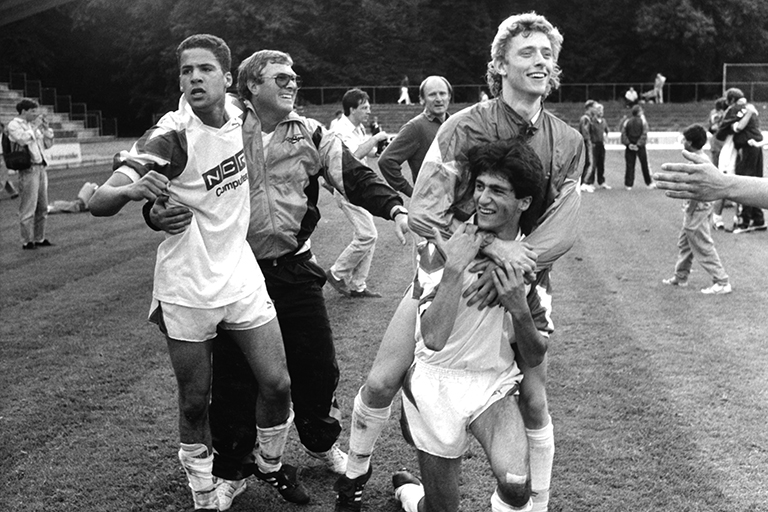Das weiß ich noch wie gestern, kurz vor der Halbzeit habe ich den Ball an den Kopf bekommen und drin war er. Ich hatte definitiv einen Torinstinkt, aber Kopfball war meine Schwäche. Dieter Frey hat dann das 2:2 erzielt und kurz vor Schluss gelang mir der vielumjubelte Siegtreffer zum 3:2. Das war mit Sicherheit eines meiner besten Spiele überhaupt, der 1. FC Köln hat mir auch daraufhin ein Angebot gemacht, aber mein Vater, ein fanatischer BCA- und FCA-Fan, hat es mir verboten. Erst Abi, dann Fußball.